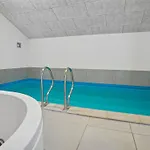A Haderslev városi ingatlan önellátó felszereltségéhez tartozik a felszerelt konyhasarokban elérhető mosogatógép, hűtő és sütő. A Restaurant Dannevang V 14 percnyi sétára található. A vendégek a Sonderborg repülőtérről autóval 56 perc alatt elérhetik a 2 fürdőszobás villát. A villa biztosít teraszt, valamint szaunát és beltéri medencét.
